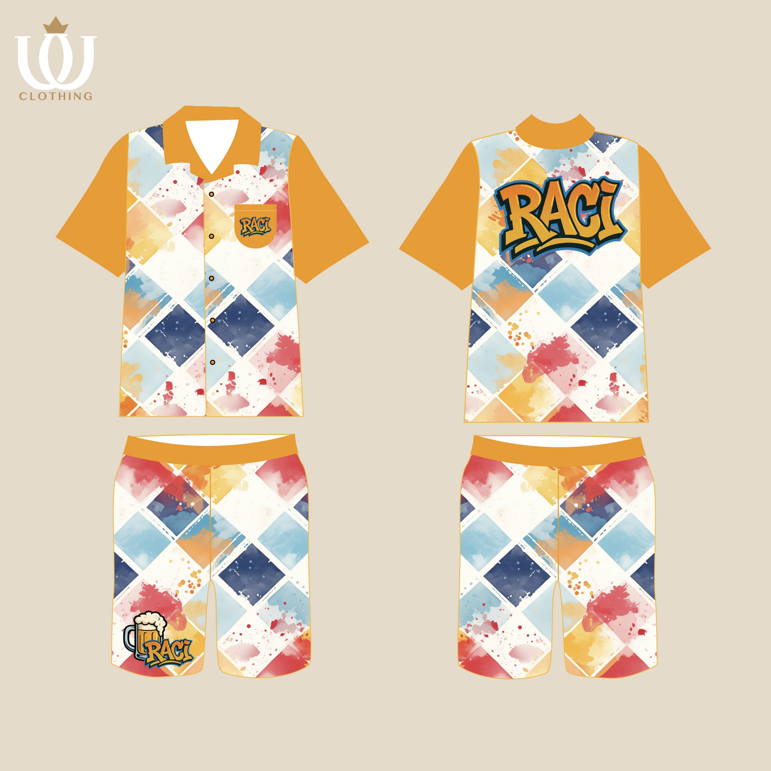 Button Up Shirts With Prints Design On Back Shirts And Shorts Matching Set UF-8836