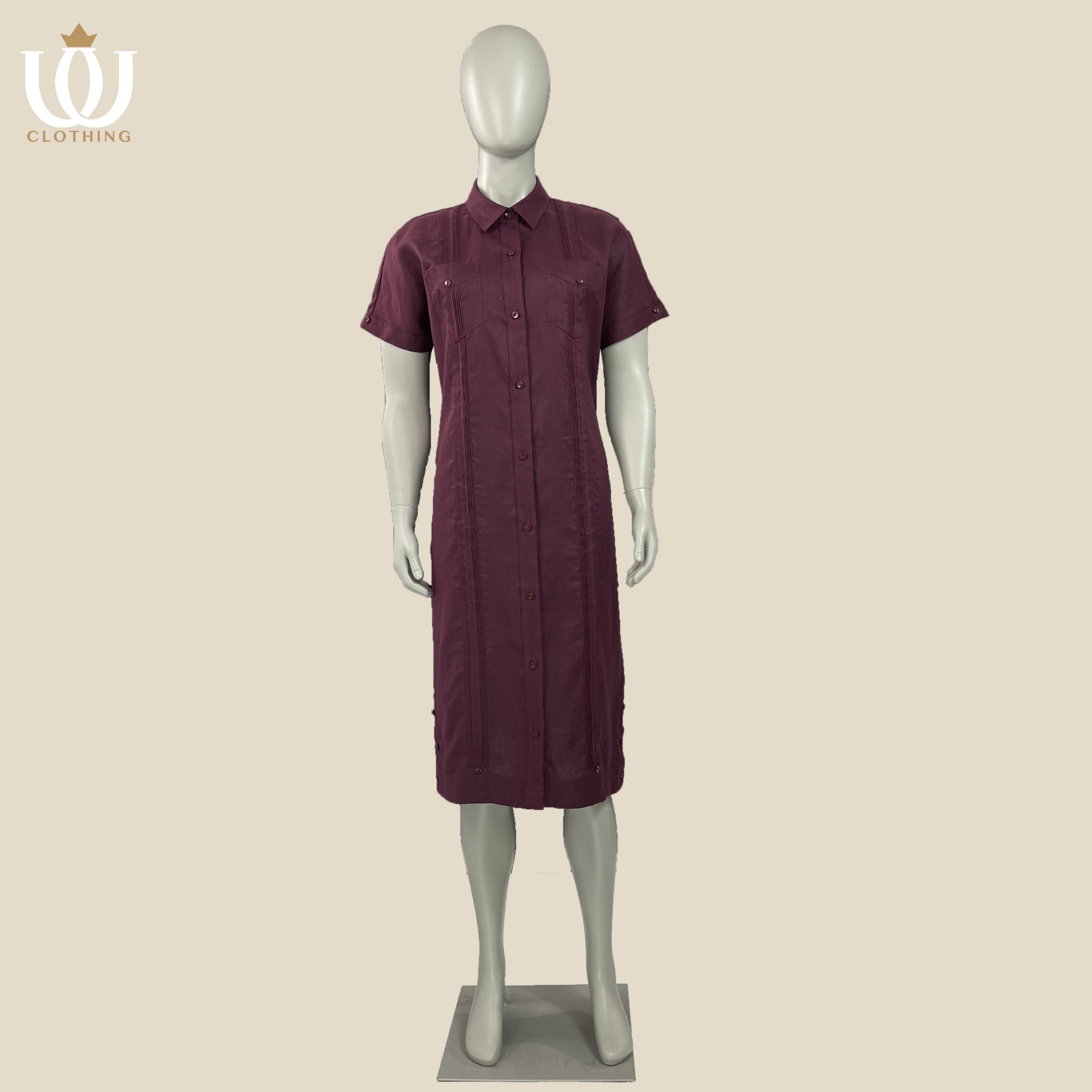 Women’s Guayabera Dress Short Sleeve Burgundy